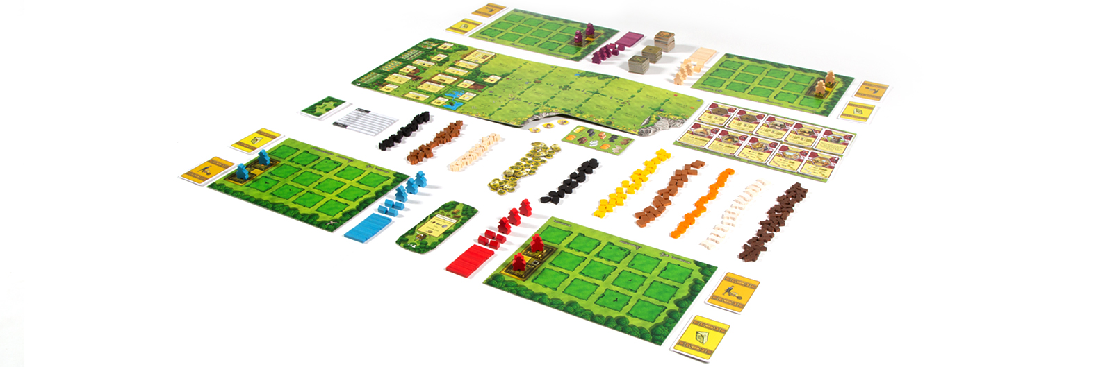 Chaque partie d’Agricola est unique, notamment grâce aux cartes, choisies au hasard parmi les 48 cartes Savoir-Faire et les 48 cartes Aménagements mineurs.