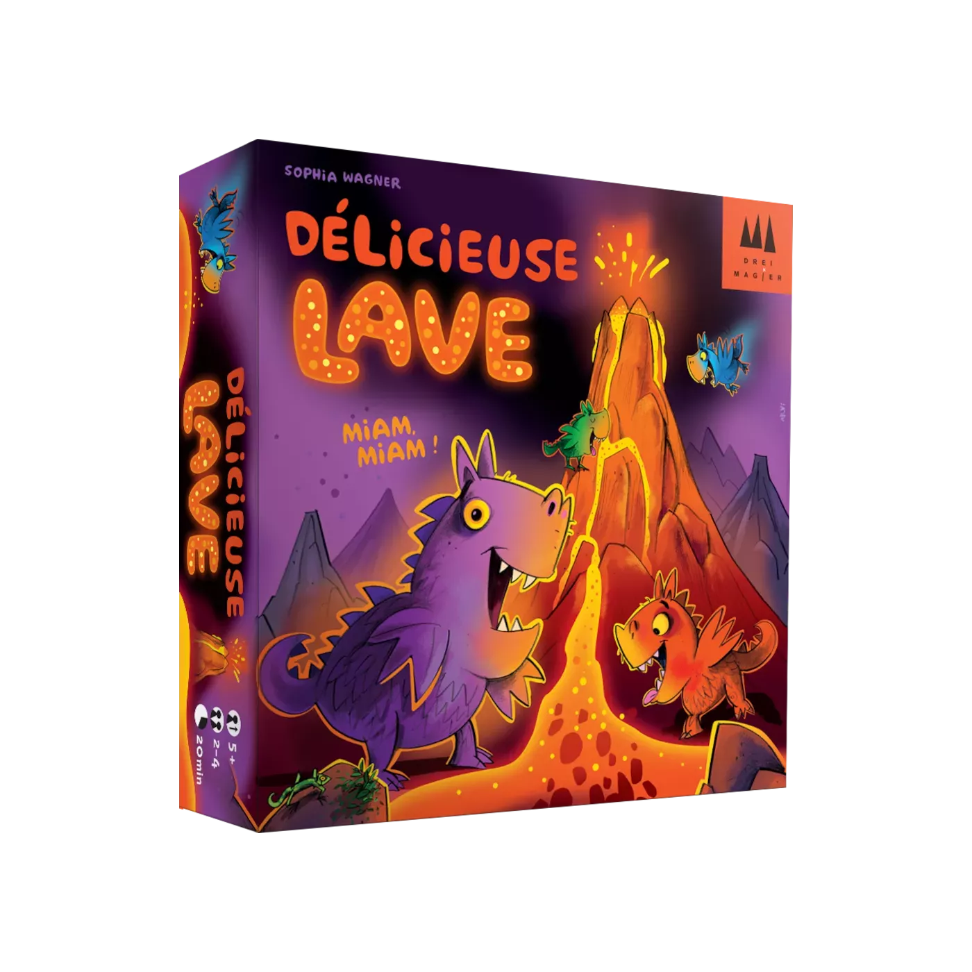 Délicieuse Lave plonge les enfants au pied d’un volcan en éruption, où des éclats de lave colorés dévalent les pentes. Chaque joueur incarne un dragon gourmand, prêt à avaler les morceaux les plus précieux tout en évitant la lave refroidie. L’ambiance est joyeuse, spectaculaire et pleine de suspense à chaque coulée de lave.