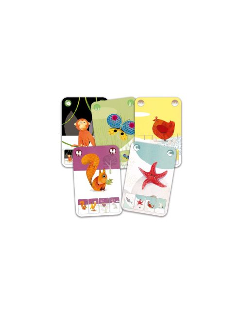 Un jeu de 7 familles coopératif où tous les joueurs jouent ensemble contre le loup. Pour gagner, il faut reconstituer les 7 familles d’animaux avant que les 6 cartes loup n’aient été retournées !