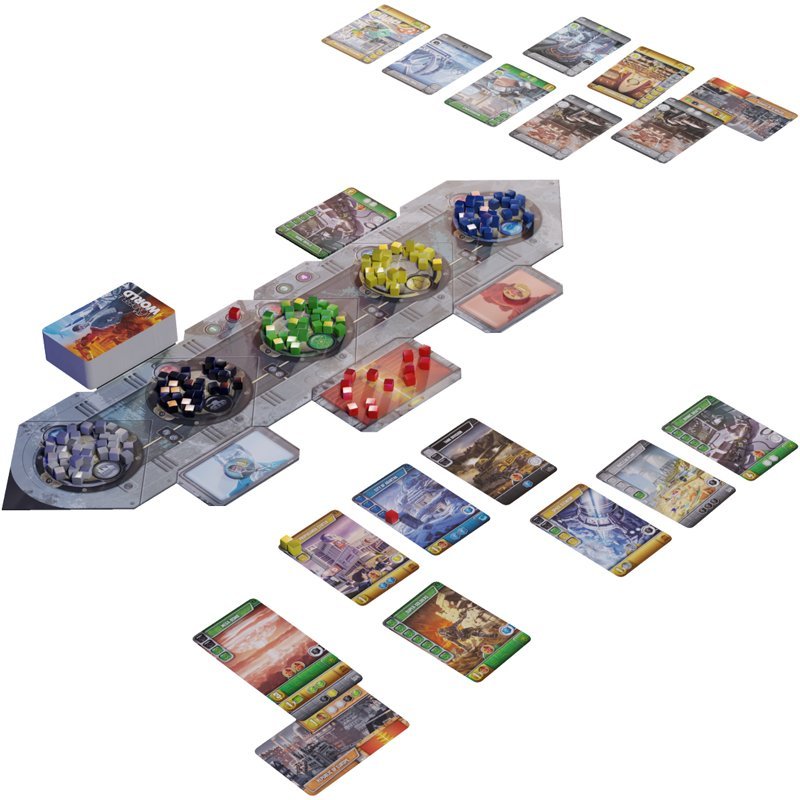 A la tête d’un empire dans un univers dystopique cherchant à se développer et s’étendre, vous devrez obtenir le plus de points de victoires au terme de 4 manches.
