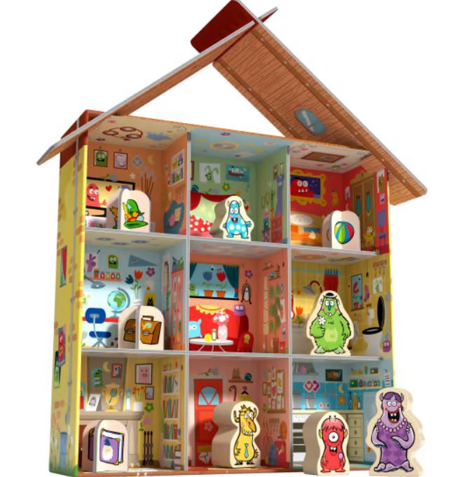 Les enfants aident la famille Monstre à retrouver Wanda dans la maison colorée et bien remplie. Ils suivent les consignes données dans le livret et placent les monstres dans les pièces indiquées pour retrouver la trace de Wanda. Pour y parvenir, il faudra user de son sens de l’observation, être perspicace et savoir se repérer dans l’espace.