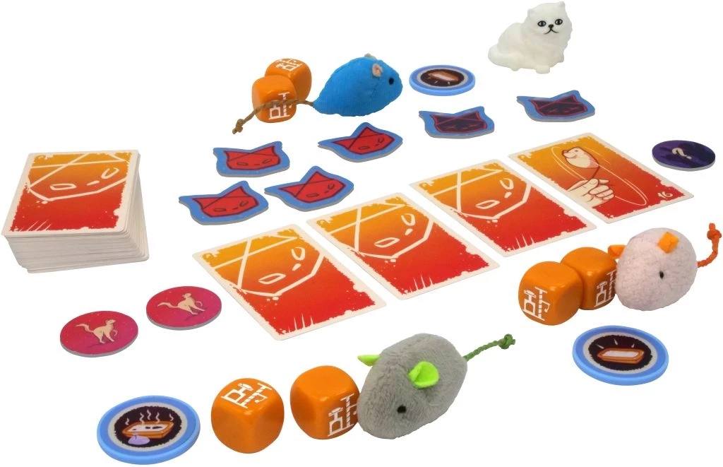– Composants variés et amusants (dés, souris, jetons, figurine chat…)