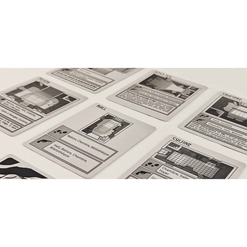 Chaque joueur incarne un personnage (John Doe ou Jane Doe) et utilise un paquet de cartes représentant les différentes pièces du manoir. À votre tour, vous disposez de deux points d’action pour vous déplacer, tirer, poser des pièges ou activer les effets des pièces. La déduction est au cœur de l’expérience : vous devrez deviner la position de votre adversaire tout en masquant la vôtre. Pour gagner, il faut toucher votre rival deux fois, en utilisant les pièges ou en tirant avec précision.