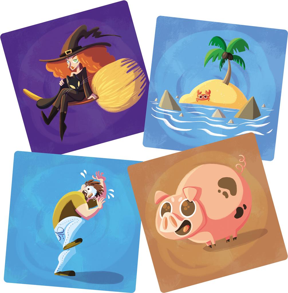 Le premier invite le « meneur » à piocher les cinq premières cartes de la pile de cartes Images. Il doit ensuite inventer une histoire d’au moins une minute à partir des illustrations tirées l’une après l’autre. C’est ensuite au tour de son adversaire de piocher cinq nouvelles images et de raconter une histoire.