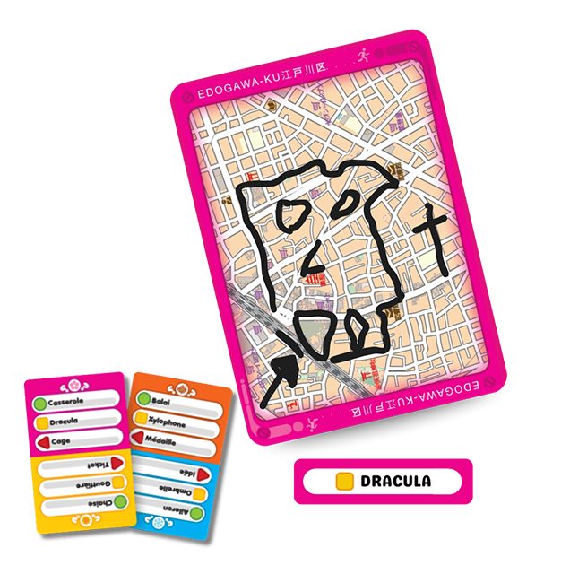 Tous les joueurs dessinent en même temps sur des plans représentant différents quartiers de Tokyo. Le but : faire deviner un mot en quelques secondes. À chaque mot trouvé, vous gagnez du temps pour dessiner le suivant. La partie est gagnée si l’équipe réussit à faire deviner un mot sur chacun des 23 plans. Le temps est géré via une application mobile (nécessaire), rendant le rythme de jeu fluide et intense. Attention : feutres non inclus.