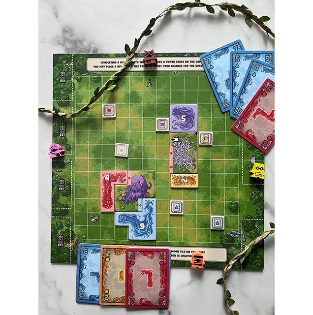 Les joueurs coopèrent dans un jeu de plis à communication limitée où chaque carte doit être jouée avec précision. L’objectif est d’encercler des tuiles Mission à l’aide de polyominos gagnés lors des plis. Chaque mission propose des contraintes uniques et fait progresser une campagne en monde ouvert.